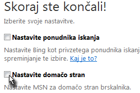 Odznačite obe možnosti, če želite ohraniti prvotne nastavitve vašega brskalnika. Kliknite na gumb Nadaljuj.