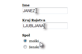 Najprej boste v okence vpisali svoje ime in kraj rojstva. Nato boste izbrali še vaš spol.