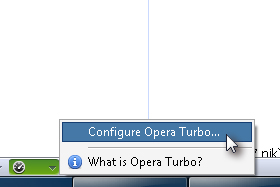 Izberemo Settings > Quick Preferences > Enable Opera Turbo.