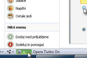 Pokazal vam bom, kako lahko Opera Turbo še prilagodite, da se vklopi samo takrat, ko je povezava počasna. Kliknite na zeleno ikonico spodaj. |