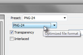 V Adobe Photoshop to storite tako, da kliknite zgoraj na File, Save for the Web in nato določite PNG-24. |