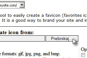 Kliknite tukaj, da odprete spletno stran za kreacijo transparentne spletne ikone in kliknite na gumb Prebrskaj ... |