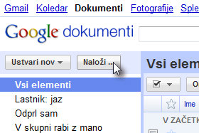 Kliknite nato na povezavo Vsi elementi (glej sliko).