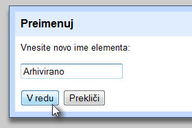 V novem oknu vpišite poljubno ime nove mape in kliknite na gumb V redu.