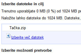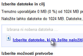 V novem oknu kliknite na povezavo Izberite datoteke, ki jih želite naložiti.
