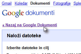 Ko bo datoteka naložena, kliknite na povezavo Nazaj na Google Dokumenti, da se boste vrnili na prvo stran.