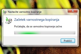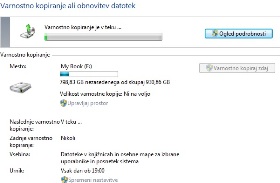 Ko zaženemo varnostno kopiranje, pa se odpre le še potek le-tega v nadzorni plošči.