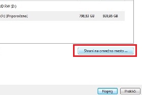 Nato se nam odpre okno, kjer moramo izbrati kam želimo shraniti varnostno kopijo.