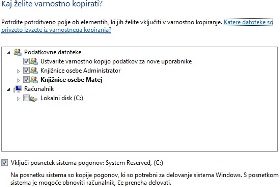 Izberite Izbral bom sam, v kolikor želite sami izbrati kaj vse se naj varnostno kopira.