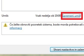 Če želite spremeniti urnik varnostnega kopiranja kliknite na Spremeni urnik.
