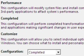 Izberite konfiguracijo namestitve. Izbirate lahko med Performance, Completed (celotna preobrazba) ali Customize (po meri - sami izberete kaj želite namestiti).