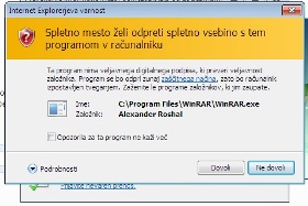 Internet Explorer vpraša, če naj dovoli dostop do programa WinRAR.