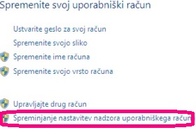 Kliknite na Spreminjanje nastavitev nadzora uporabniškega računa. |