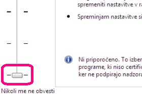 ![]() Drsnik pomaknite čisto navzdol k napisu Nikoli me ne obvesti. |