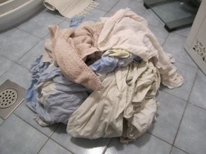 Tukaj se štejejo brisače, rjuhe, cunje. Nikakor pa ne dajte na isti kup barvnih oblačil ali podobno.