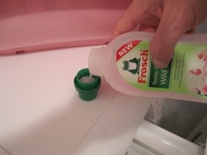 Mehčalec dodajte sedaj v pravilni del posodice za prašek.