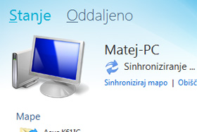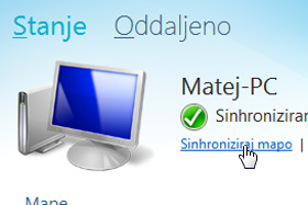 Stanje celotnega poteka sinhronizacije vseh map v programu, lahko vidite tudi na vrhu programa.