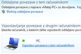 V primeru, da ste si premislili in želite onemogočiti možnost oddaljene povezave na računalnik, izberite Blokiraj oddaljene povezave, morda boste tako kot prej, potrebovali skrbniško dovoljenje. Za vzpostavitev povezave z oddaljenim računalnikom, pa kliknite na Vzpostavi povezavo s tem računalnikom.