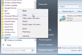 To storite tako, da odprete meni Start, odprete mapo Windows Live, z desno miškino tipko kliknete na Windows Live Mesh in kopirate bližnjico.