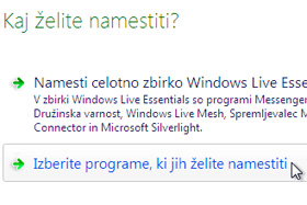 Malo počakajte, da se namestitev zažene. Če želite namestiti celotno zbirko Windows Live Essentials izberite Namesti celotno zbirko Windows Live Essentials, če pa želite namestiti samo Windows Live Mesh, pa kliknite na Izberite programe, ki jih želite namestiti. Jaz sem izbral slednjo možnost.