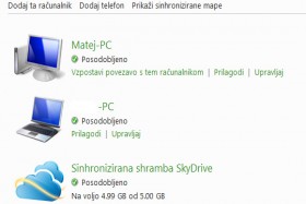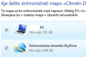 Izbirate lahko med dodanimi napravami in spletno shrambo SkyDrive, kjer imate brezplačno na voljo 5 GB. Izberite poljubno mesto ali več mest in potrdite z gumbom V redu.