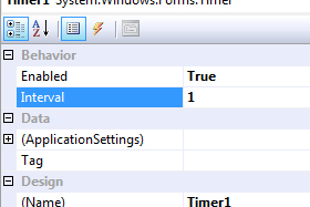 Zdaj "Timer1" in "Timer2" nastavite "Enabled" na True in "Interval" na 1.