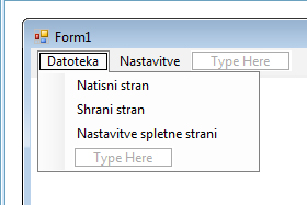 Dodamo še "Status strip" in "Menu strip", ter dva "Timer"-ja.