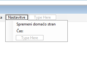 Dodamo še "Nastavitve", pod tem "Spremeni domačo stran" in "Čas:"