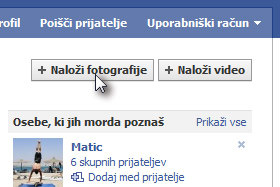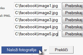 Sedaj imate na voljo pet polj za nalaganje slik. Mi bomo tokrat naložili le prvo, profilno sliko.