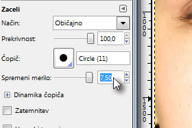 Potem pa še določite velikost čopiča, s katerim boste obdelali kožo v polju Spremeni merilo.