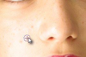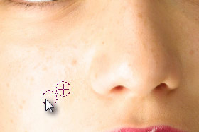 Spustite tipko Ctrl in s čopičem počasi prebarvajte prej kopiran del, da boste zapolnili del z mozoljem (glej sliko).