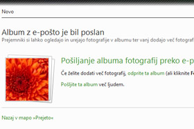 Po uspešnem pošiljanju se odpre stran, ki vas obvesti, da je bil album z e-pošto poslan. Seveda lahko album posredujete še več ljudem in dodate nove fotografije.