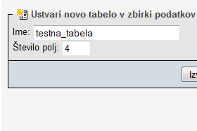 ![]() Sedaj bomo tej bazi dodali tabelo, v kateri bodo shranjeni naši podatki. |