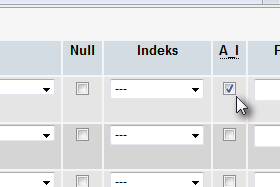 ![]() Prvo polje smo poimenovali id, ki bo predstavljalo številko, katero ima vsak zapis v bazi različno. |
