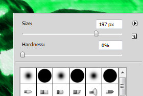 Kliknite z desnim miškinim gumbom na dokument in določite Hardness na 0% in Size (velikost radirke) poljubno.
