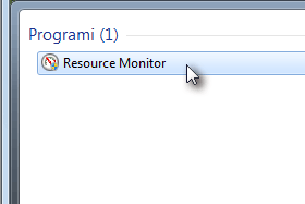 ![]() Med najdenimi programi bi morali sedaj zagledati Resource Monitor. |