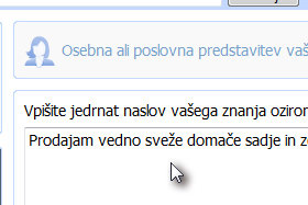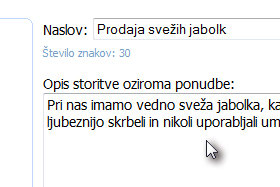 V prvo polje vpišite naslov vašega izdelka ali storitve in spodaj preprosto besedilo, ki naj bo napisano čim bolj jasno in jedrnato. |