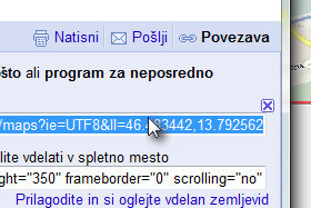Pritisnite tipki Ctrl + C, da povezavo do zemljevidov kopirate. |