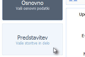 Kliknite levo na gumb Predstavitev. Vaše osebne podatke sicer lahko shranite, vendar je sistem narejen tako, da bo shranil vse naenkrat. |