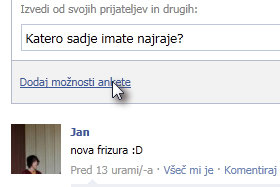 Anketa se bo vašim priajteljem prikazala in tudi omogočila anketiranje.