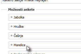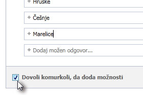 Če bi radi imeli fiksne odgovore, ki se ne morejo dodajati ali spreminjati, potem ne označite omenjene možnosti. |
