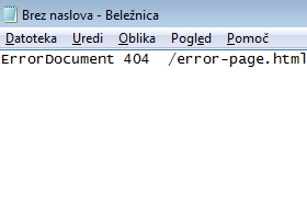 ErrorDocument 404 /error-page.html Sedaj datoteko shranite pod imenom .htaccess.txt |