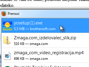 Sedaj morate v prenosih videti dodateko yosetup.exe.