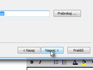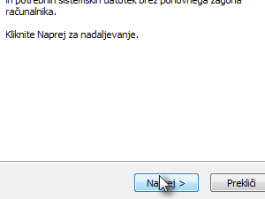 Sedaj izberite ciljno mapo, a najbolj priporočljivo je, da si izberete mapo, katero je računalnik predlagal.