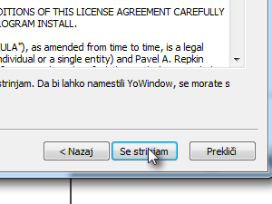 Ob naslednjem koraku si lahko vzamete čas in si preberete angleške pogoje uporabe programa YoWindow.