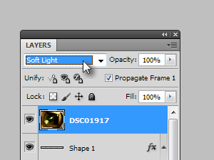 Blending bomo nastavili na Soft Light.
