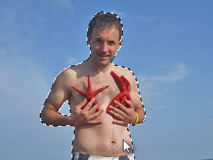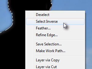 Kliknite na selekcijo z desnim miškinim gumbom in izberite Select Inverse. Sedaj smo označili vse okoli osebe. |