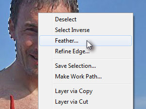 Ko boste osebo označili, kliknite na označen del z desnim miškinim gumbom in izberite Feather...