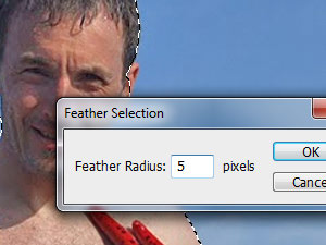 V novem oknu določite Feather Radius na okoli 5 pixels in kliknite na gumb OK.