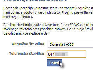 Prikaže se vam okno, kjer vpišete vašo mobilno telefonsko številko in kliknite na gumb Potrdi.